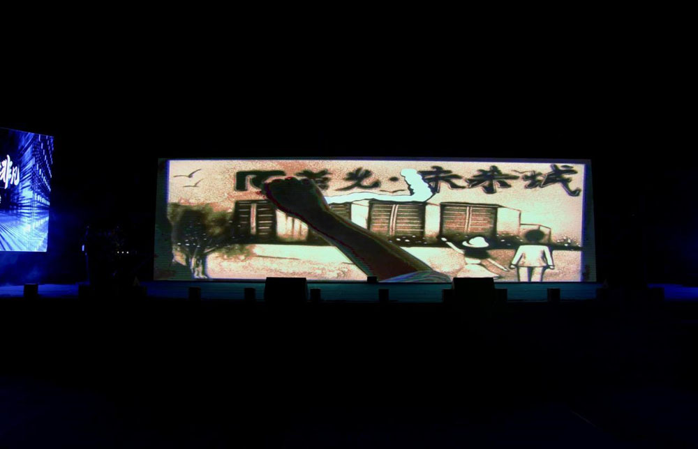 沙畫(huà)表演藝術(shù)家以沙畫(huà)形式演繹榮光未來(lái)城項(xiàng)目歷程,描繪未來(lái)城將來(lái)規(guī)劃,這樣別具一格的創(chuàng)新表演是不是讓人眼前一亮。