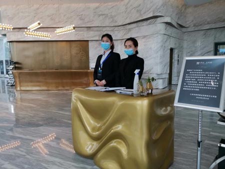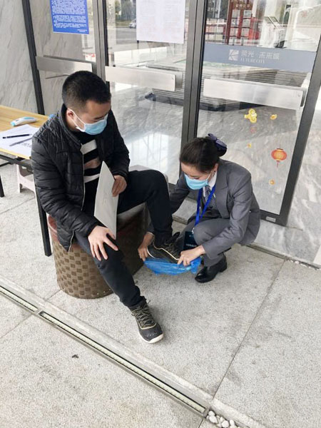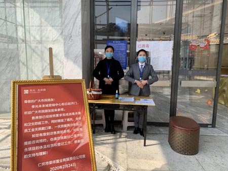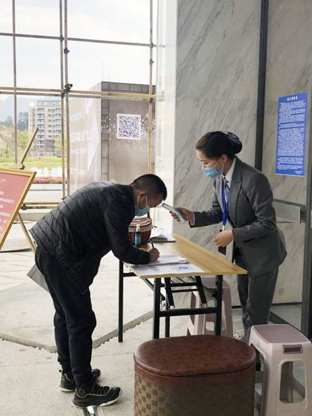 上海榮光總部緊急成立了復工防疫領(lǐng)導小組,同時配備了相應的工作人員。2月17日,沉寂了近一個月的仁懷項目公司迎來了開工日,當日30位工作人員佩戴口罩通過體溫監(jiān)測回到工作崗位,直至24日,除身在武漢疫區(qū)的一名保潔員,其他崗位人員皆陸續(xù)到崗,目前在崗65人。