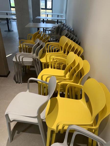 12:00食堂開餐,每個人帶上自備的飯盒依次有序到食堂,由工作人員打餐,取餐完畢后立即回到自己的工位用餐,不允許在餐廳逗留和集聚用餐。