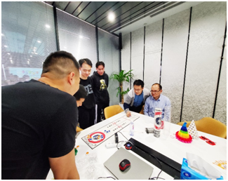 簡(jiǎn)單而溫馨的慶生儀式后,為大家準(zhǔn)備了迷你冰壺的活動(dòng),讓沒(méi)有參加團(tuán)建的伙伴們也能感受一下桌上冰壺的樂(lè)趣。參加過(guò)團(tuán)建旱地冰壺的同學(xué)可以給出自己的經(jīng)驗(yàn)總結(jié),心得體會(huì),互相配合一起參與。
