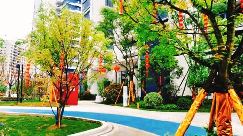 進(jìn)入小區(qū),道路兩旁對(duì)稱設(shè)計(jì)的迎賓樹種,讓歸家路途充滿儀式感。主路+多個(gè)蜿蜒小路的精心步道,伴隨著各種具有特色的花園小景接踵而至迎面撲來。綠蔭成林,曲徑通幽,包攬未來生活中的所有歡笑,于園區(qū)中漫步,視野所及皆是靈動(dòng)的綠意。