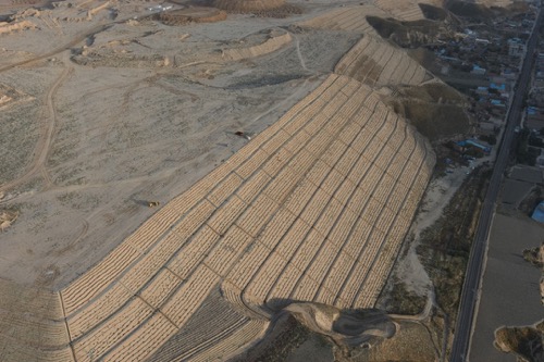 邊坡綠化工程:綠植灑水養(yǎng)護(hù)、排水溝施工