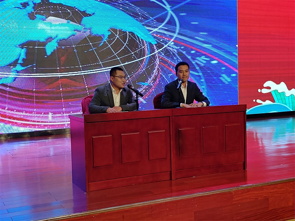 隨著物業(yè)公司張文平的一曲《歡聚一堂》嘹亮的歌聲,演出正式拉開帷幕。由市政配套部劉邁表演的舞蹈《萬疆》,嫵媚的表情和婀娜的舞姿讓人心醉。招商部李鵬彥、何良景、海軍、鄭瑞四位“墨鏡大俠”的《群口相聲》,貼近生活、風趣幽默,特別是那句“假期和紅包還嫌少”引起了全場的共鳴。九龍湖設計部王東宛如一位詩人,深情吟唱《貝加爾湖畔》。財務部陳亞丹、王媛、杜亞麗表演的《可愛擺》,處處洋溢著青春的活力,充滿朝氣。九龍湖工程部陳軍、陸明本兩位工程師的《笑話聯(lián)播》,嚴肅的表情配著各種冷幽默的段子,讓人忍俊不禁。營銷部武亞彬、李捷飛的歌曲《活著》唱出了生活的艱辛和不易,但又充滿著希望。物業(yè)公司張文平、楊時海、任彥峰、肖雄、張大明五位壯漢套著“充氣娃娃”道具表演的《舞蹈串燒》令人捧腹。物業(yè)公司李林靜、李群立的《我心永恒》,優(yōu)雅的舞姿,專業(yè)的動作,令人折服。工程部趙靖、尉瑞斌的《講不出再見》,唱出了那種不忍離別的深情。九龍湖工程部宋浩、逯磊的《在此刻》,唱出了成熟男人的家國情懷……