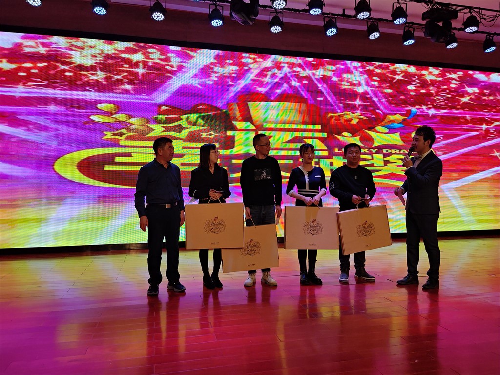 在演出間隙,李董、王董、趙總、陳總、孫總等領導先后上臺為大家抽取大獎,這次年會公司準備了豐厚的禮物,有貴重的紀念品以及現(xiàn)金大禮。大家在品嘗美味大餐和欣賞精彩節(jié)目的同時,更是收獲了一份意外的驚喜。這些都源于老板們對員工的深切關懷,是企業(yè)與員工心心相印的真實寫照。